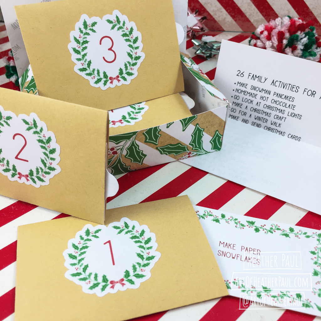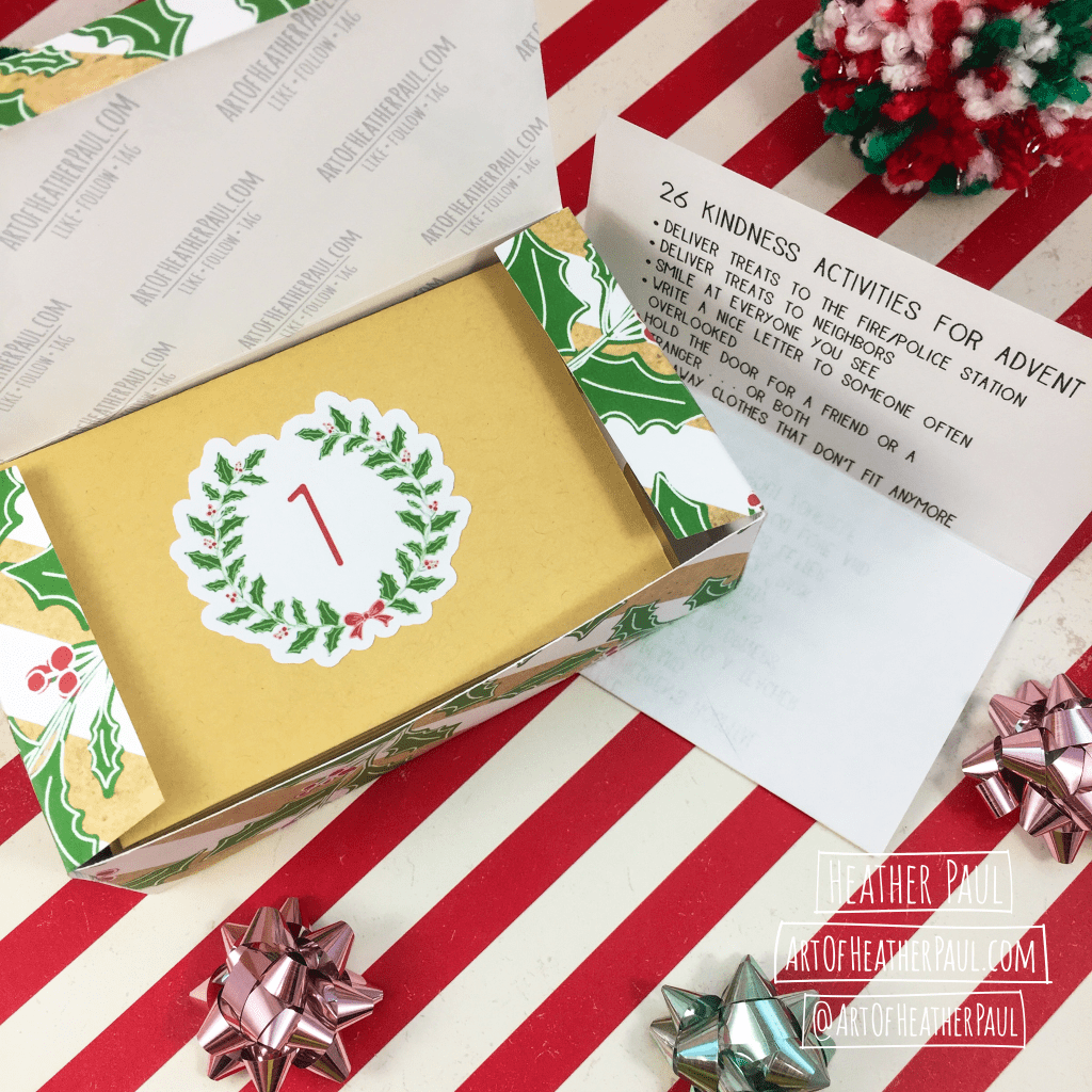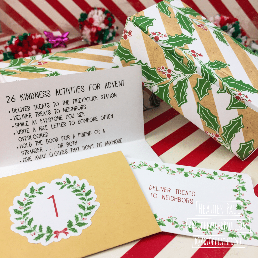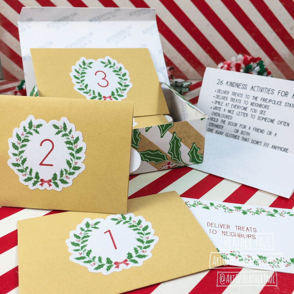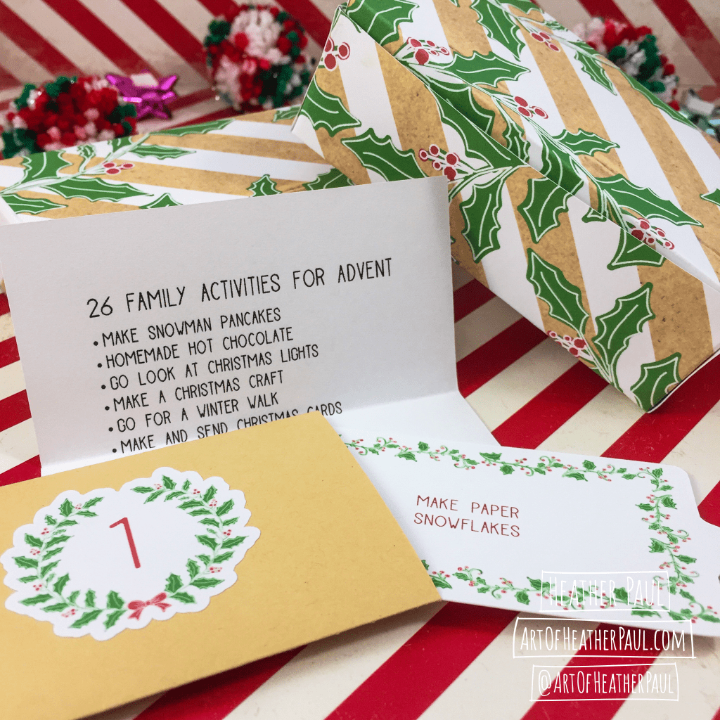 Something I’ve had in mind for a few years, but not had the time to see through to fruition, has been to create Advent Activity Calendars. FINALLY the time has come—thanks to starting literally months ago! I created two versions of the Advent Calendars for 2021: one for family activities and one for acts of kindness. Inside each handmade box (printed, cut, scored, and folded by hand) are 26 individual envelopes (each containing an activity prompt)* and a printed overview of all the activities for the 26 day countdown. This will allow you to plan ahead if needed as they are packed in random order. Cost for the kits is $15 (plus shipping if necessary). If you’re interested in ordering, feel free to contact me here.